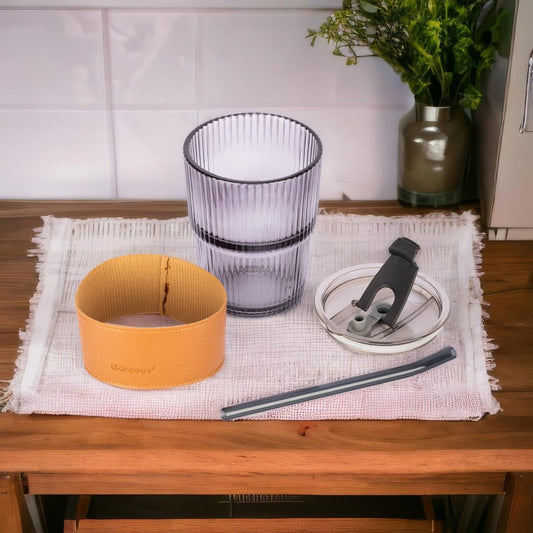 Glass Tumbler with Lid & Glass Straw Pack of 1, 450ml